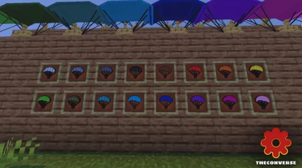 Каждый парашют создается через индивидуальный рецепт крафта с использованием соответствующего цвета шерсти. Это позволяет игрокам выбирать расцветку, которая лучше всего подходит их стилю или команде. Модели парашютов получили значительные улучшения по сравнению с предыдущими версиями аддона, обеспечивая более реалистичную анимацию и визуальное качество.