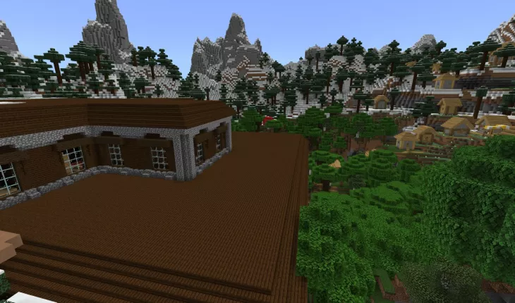 Самое важное в этом сиде, что искать интересную местность вам не придется. Она находится сразу на точке спавна, откуда открывается отличный вид на деревню, лес и особняк. Деревня станет отличным местом для старата. обеспечив игркоа ресурсами и возможностью торговли. Здесь можно быстро подготовиться и перейти к зачистке особняка, который может даже стать чем-то вроде полноценной базы для дальшейншего прохождения игры.
