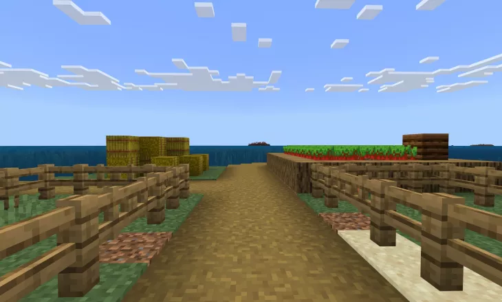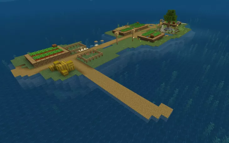 Его таинственный, почти незавершенный вид вызывает вопросы — была ли деревня заброшена до завершения строительства, или же с жителями случилось что-то странное? Без укрытий игрокам предстоит либо построить деревню с нуля, либо принять вызов и выживать в этом загадочном месте. Как миниум, в вашем распоряжении будут фермы, что облегчит начало выживания. В новых версиях спавн игрока может быть на береге, но вы можете найти остров по координатам 180 ~ -260.