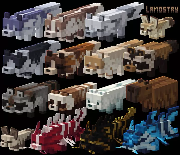 Вы встретите традиционных рыжих лис с ярко-оранжевой шерстью, арктических лис с чисто белыми шубками, а также темно-серых, черных и серебристых лис, придающих игре мрачную атмосферу. Есть и лисы с более естественными коричневыми, бежевыми или пятнистыми узорами, которые прекрасно вписываются в лесные или тайговые биомы.