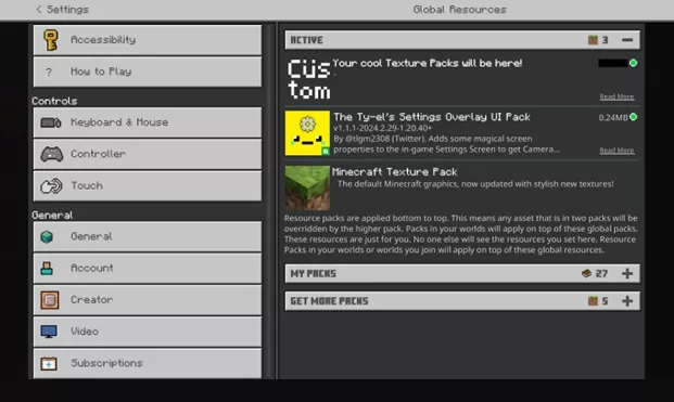 Улучшите свой Minecraft с помощью Ty-el's Settings Overlay UI Pack — легкого и функционального дополнения для стандартного интерфейса. Этот пакет добавляет удобные настройки и функции, включая: