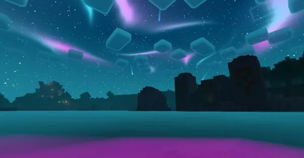 Вас ждут завораживающие рассветы, пылающие закаты и ночное небо, усыпанное звёздами и падающими метеорами. По вечерам можно наблюдать северное сияние в нежных оттенках синего и фиолетового. Во время дождя поверхность земли покрывается эффектом влажности, а яркие минералы и светящиеся фоны делают шахтёрские приключения ещё зрелищнее. Даже Незер и Энд теперь выглядят ярче и атмосфернее, сохраняя единый стиль волшебной и живой вселенной.