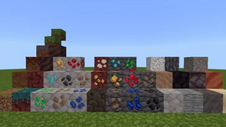 Это не просто текстур-пак, приближённый к ванильной версии — это творческая интерпретация. Текстуры отличаются теплотой тонов, контрастностью и живописным подходом, который наделяет каждый блок характером. Светящиеся руды в насыщенной породе, реалистичная поверхность камней — каждый элемент переработан с вниманием к деталям, чтобы усилить погружение в игру, не разрушая привычную атмосферу.