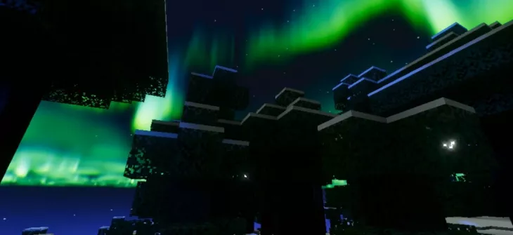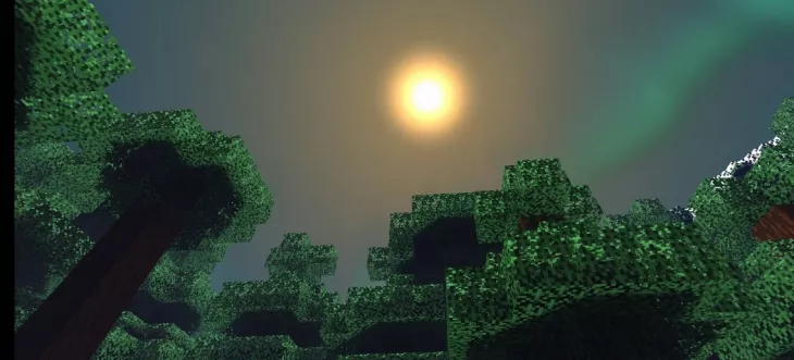 Небо и атмосфера: Над головой развернётся настоящее шоу - северное сияние танцует в ночном небе, а фантазийные облака создают драматические композиции на закате. Объёмный туман окутывает леса и горы, добавляя глубину и реализм каждому биому.